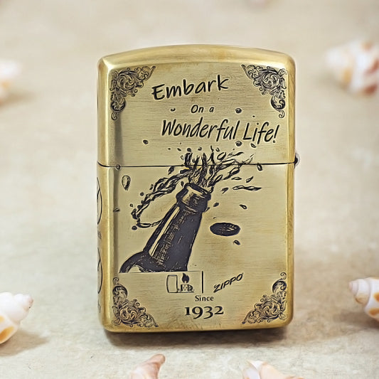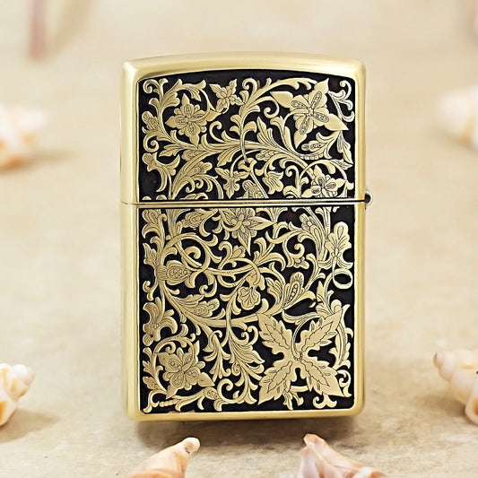 Zippo Brushed Brass Deep Carved Peony and Floral Scrollwork - SC21