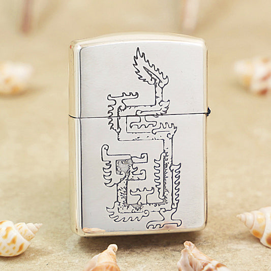 Zippo Embossed Enamel 'Prosperous Dragon' Silver-Plated 162-DS62