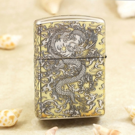 Zippo Gold and Silver Deep Carved Coiling Dragon in the Clouds - SC33