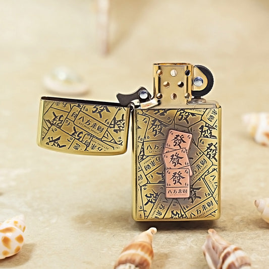 Zippo Antique Brass 'Mahjong Prosperity Tiles' - CC13