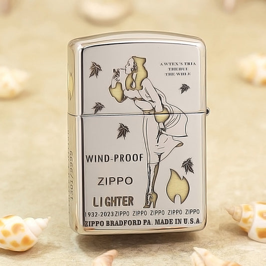 Zippo High Polish Chrome Engraved Pin-Up Girl with Falling Leaves - SC04