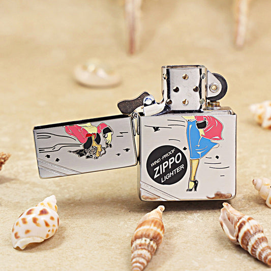 Zippo Silver Color Printed Vintage Pin-Up Girl in the Wind - CS03