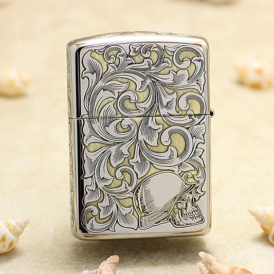 Zippo Silver and Gold Deep Carved Arabesque Nude Pin-Up - SC16