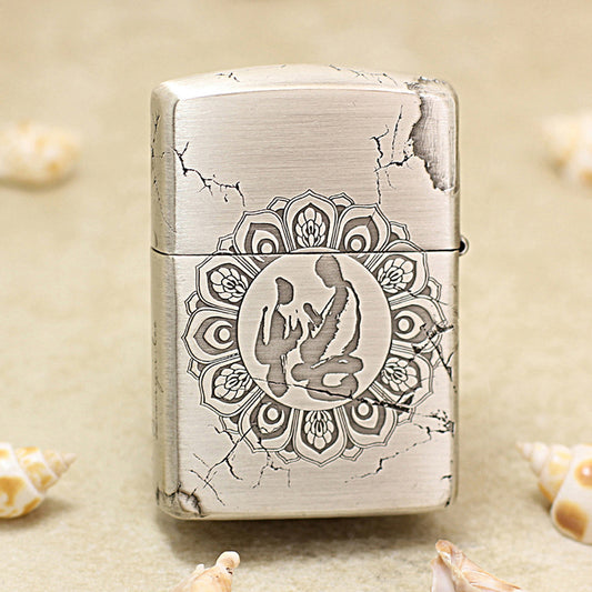 Zippo Silver Deep Carved White Tara Bodhisattva on Lotus - SC28