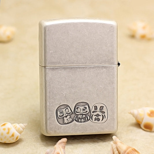 Zippo Antique Silver Daruma and Great Wave Emblem - DS161