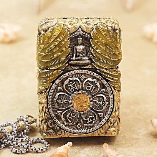 Zippo High-Polish Gold Luminous Sun Wukong Fighting Buddha Shell Case- CM86