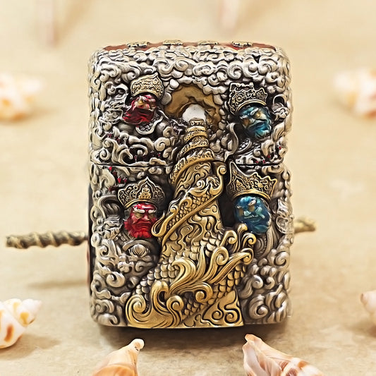 Zippo Antique Silver Three-Headed Six-Armed Nezha Shell Case - CM82