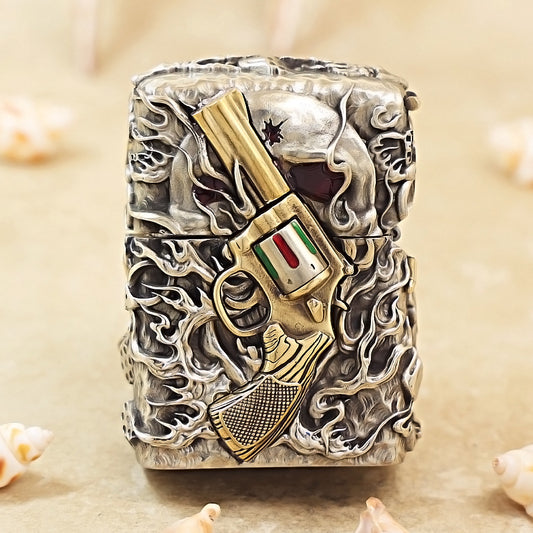 Zippo Antique Silver Nether Zorro Skull and Revolver Shell Case - CM75