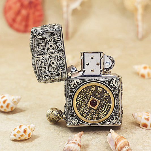 Zippo Heavy Relief Gold and Gemstone Lion Dance Head Case Set - CM41