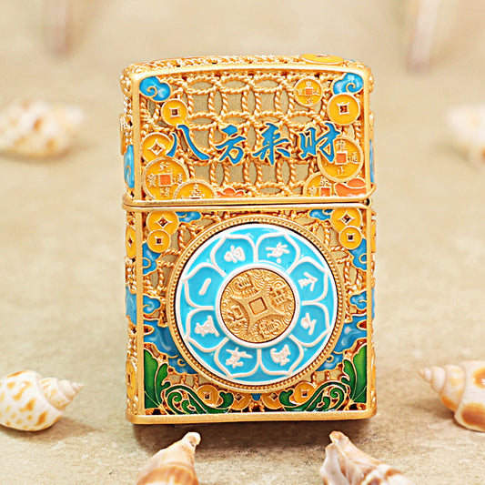 Zippo Heavy Relief Gold Abacus and Bringing in Wealth Emblem - CM05