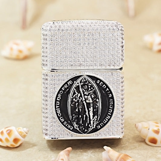 Zippo Silver-Toned Heavy Studded St. Benedict's Cross Emblem - CM08