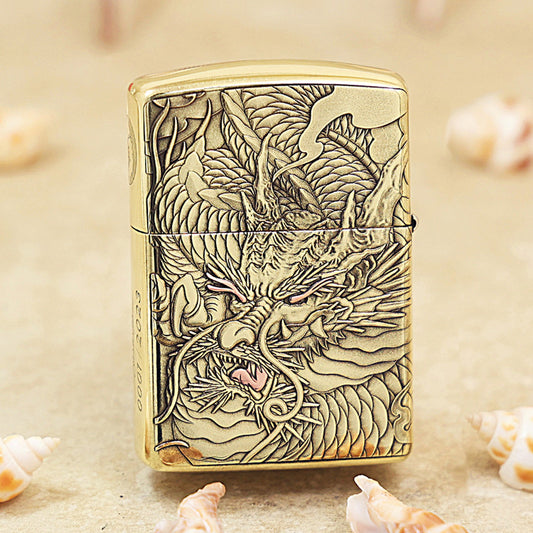 Zippo Armor High Polish Brass Koi Leaps Dragon Gate - CC95