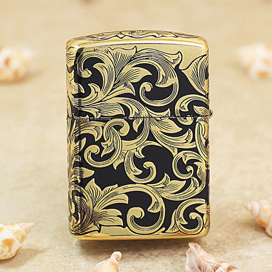 Zippo Black Matte Gold Floral Scrollwork - CC99