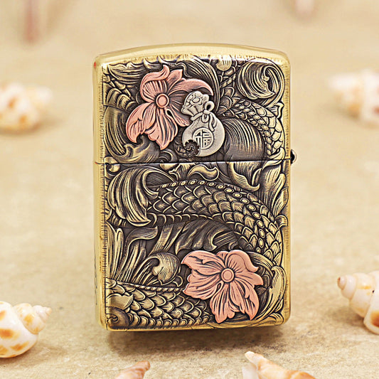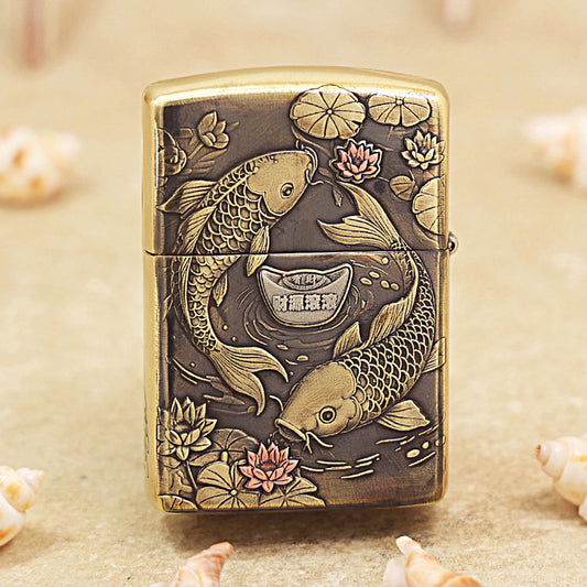 Zippo Armor Dark Brushed Brass Koi Fish Yin-Yang - CC75