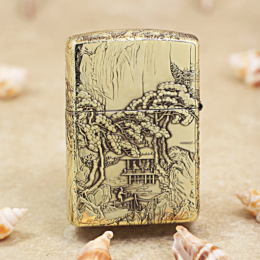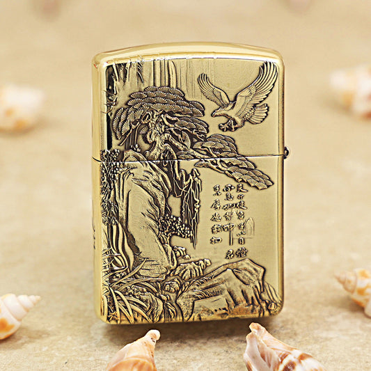 Zippo Armor High Polish Brass Eagle Emperor Landscape Painting - CC80