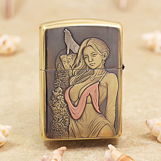 Zippo Armor Antique Brass Wolf and Forest Nymph - CC77