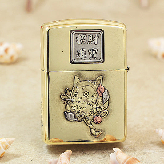 Zippo Armor Antique Brass 'Maneki-Neko Fortune Cat' - CC25