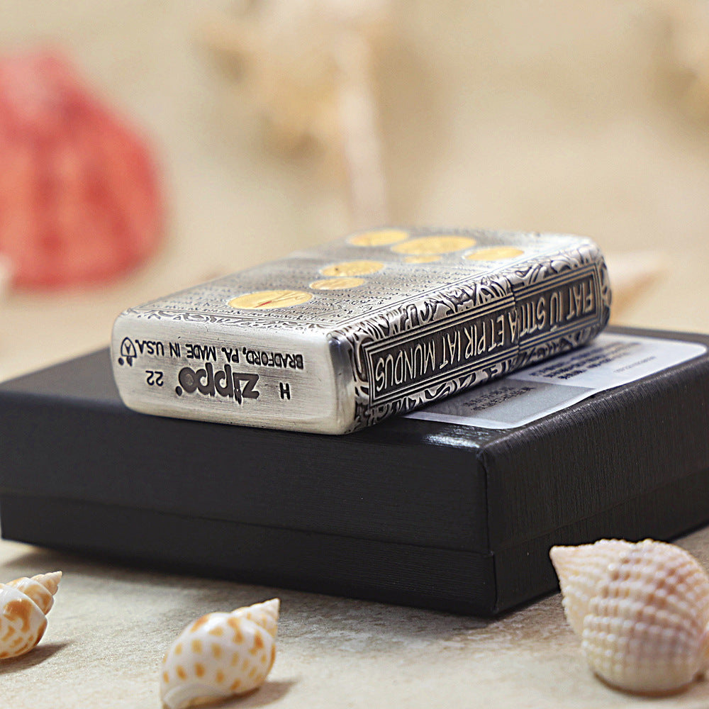 - Genuine Zippo windproof lighter with the distinctive Zippo ‘click.’