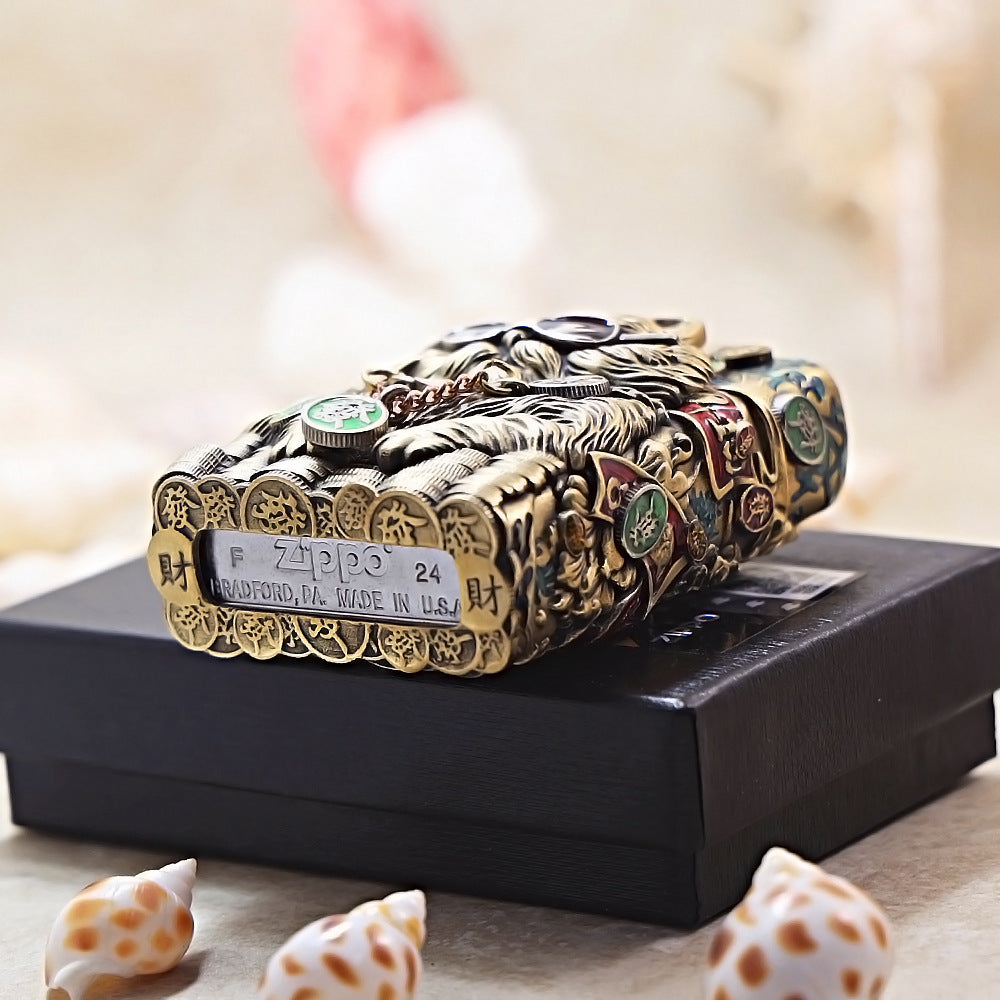 Zippo Antique Brass Cool Millionaire Fortune Cat Shell Case - CM89