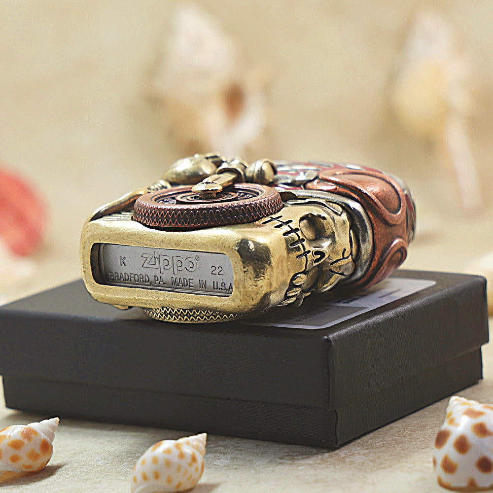 Zippo Antique Brass Fearless Knight Biker Shell Case - CM58