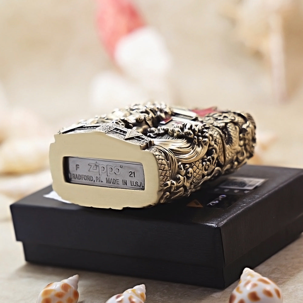 Zippo Antique Brass Majestic Pass Guardian Lion Shell Case - CM63