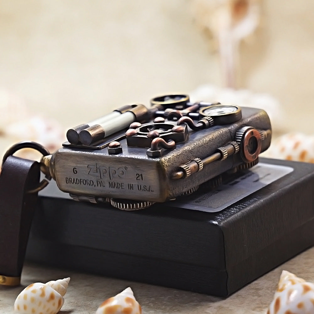 Zippo Antique Brass Steampunk Industrial Gauge - DS176