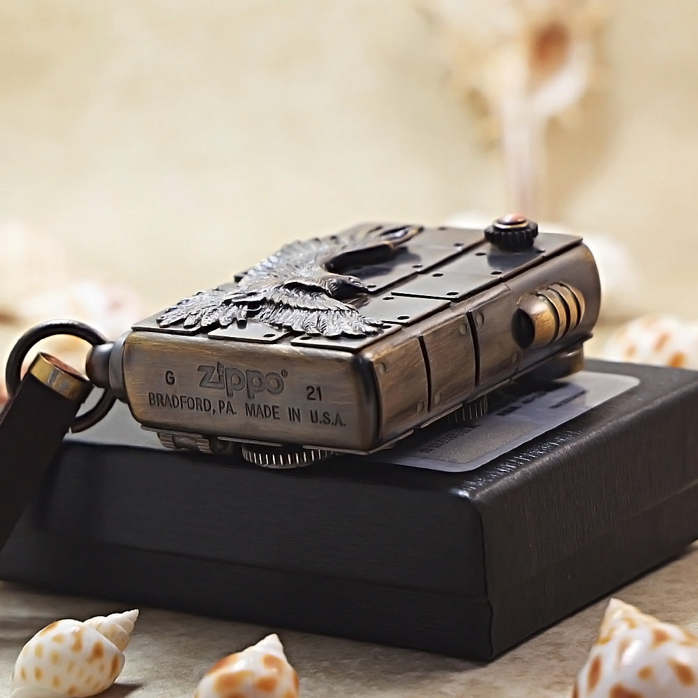 Zippo Antique Brass Steampunk Industrial Soaring Eagle - DS177