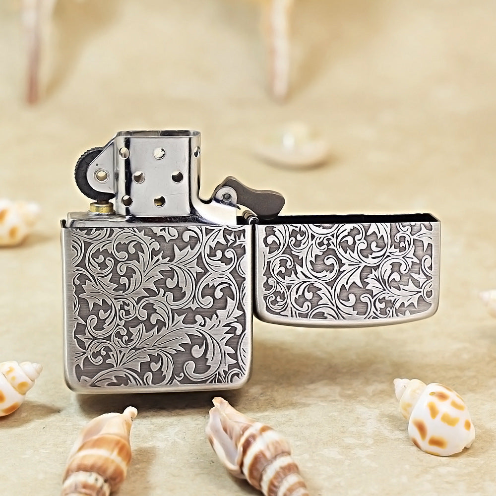 - Genuine Zippo windproof lighter with the distinctive Zippo ‘click.’