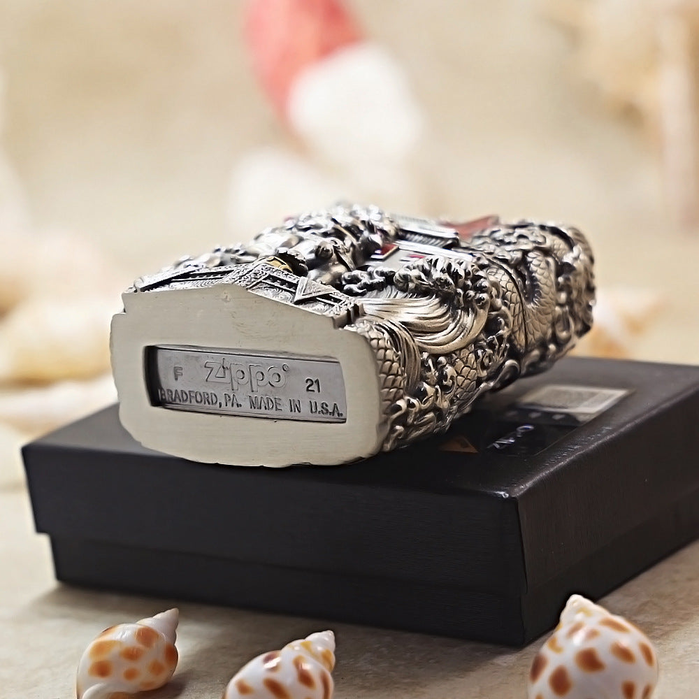 Zippo Antique Silver Majestic Pass Guardian Lion Shell Case - CM64