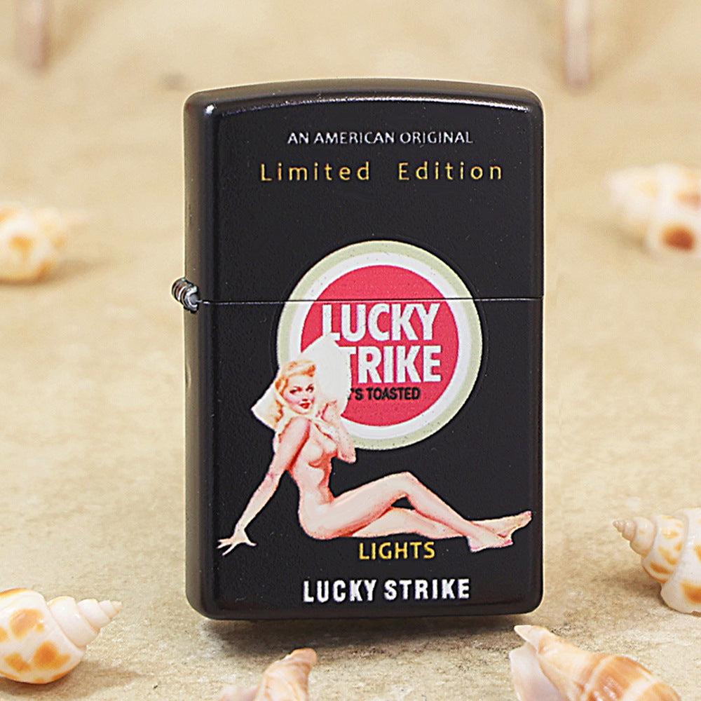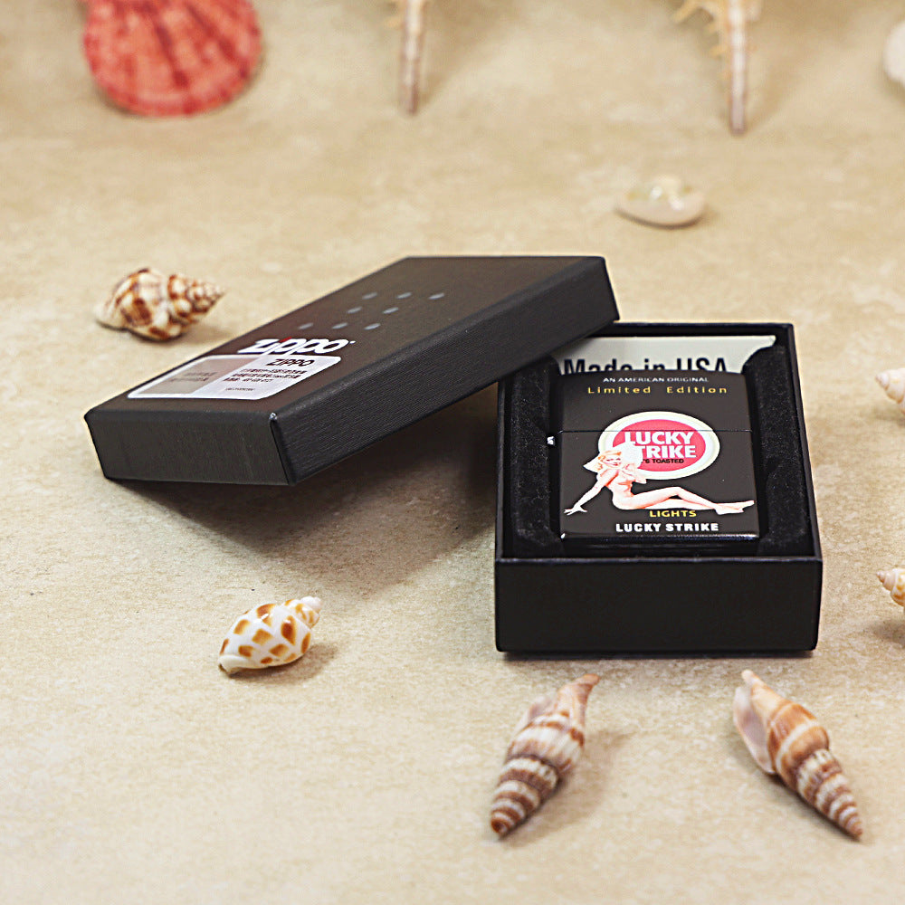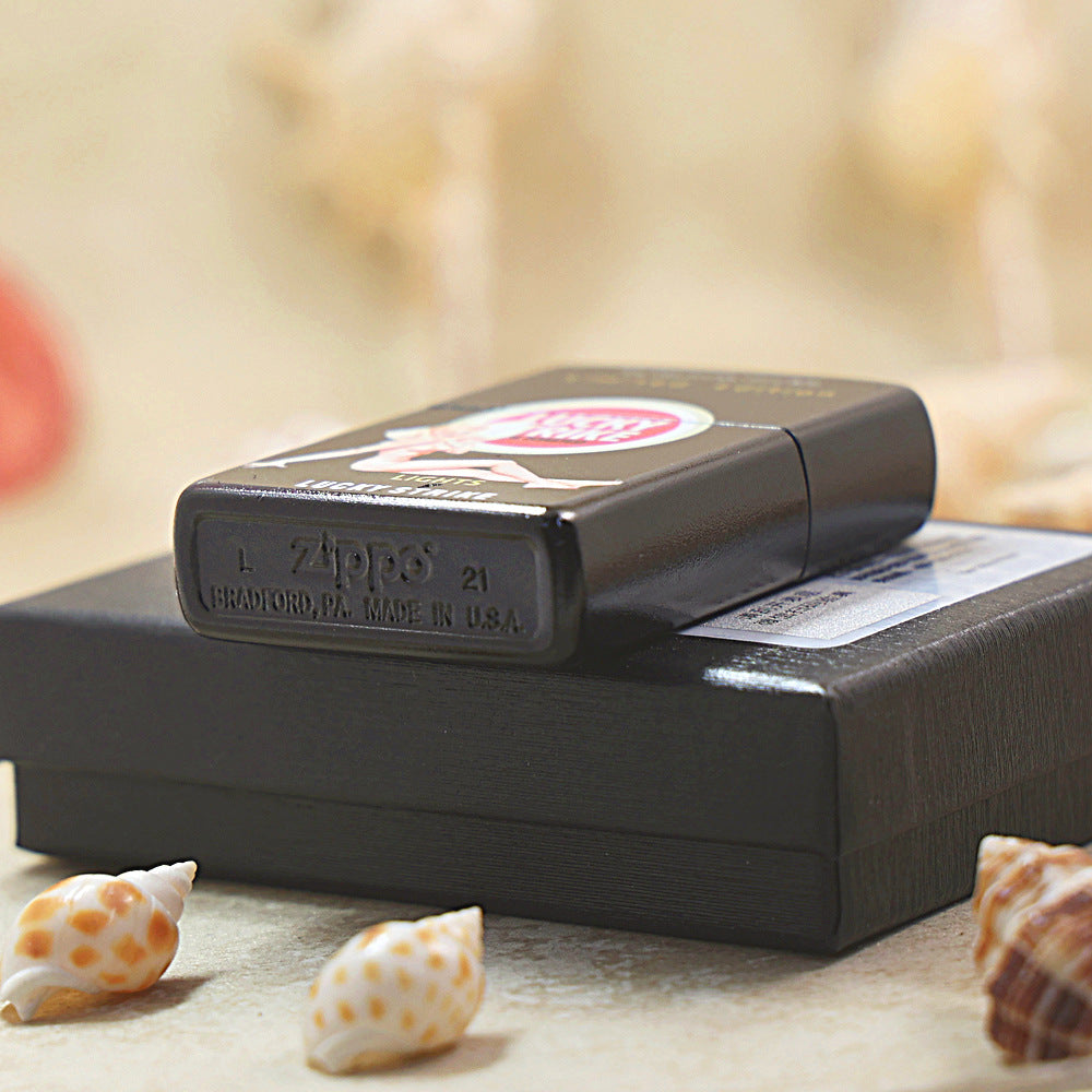 Zippo Black Matte Color Printed Lucky Strike Pin-Up Girl - CS19