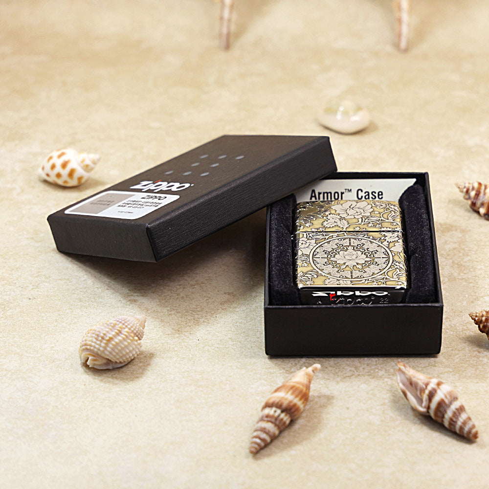 Zippo Brushed Brass Deep Carved Peony and Floral Scrollwork - SC21