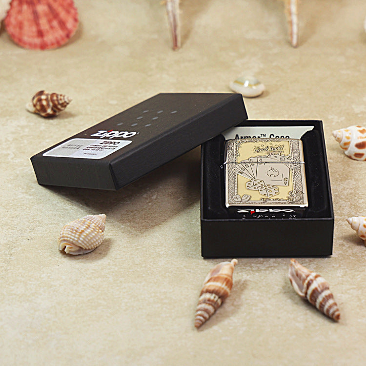 Zippo Brushed Chrome Deep Carved Good Luck Poker Hand and Dice - SC08
