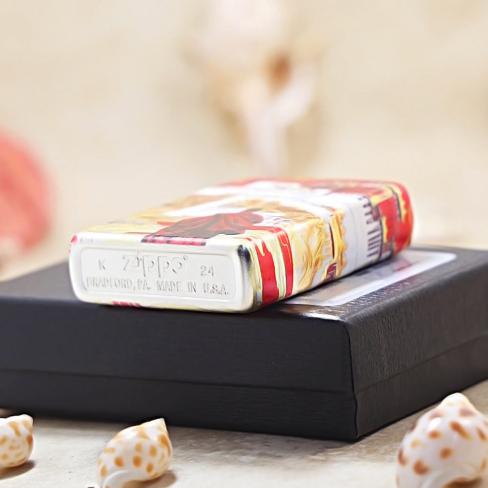 - Genuine Zippo windproof lighter with the distinctive Zippo ‘click.’