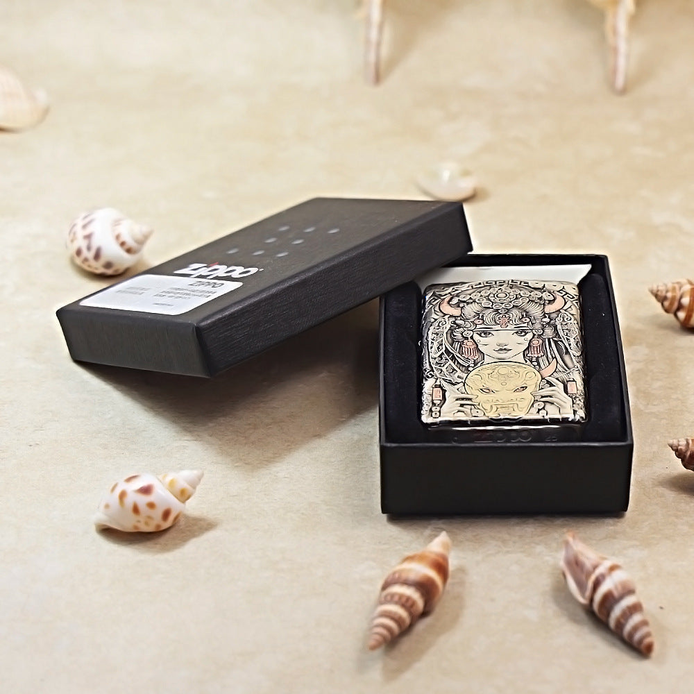 Zippo Colorful Painted Chinese Opera Female Deity Holding Mask - CM02