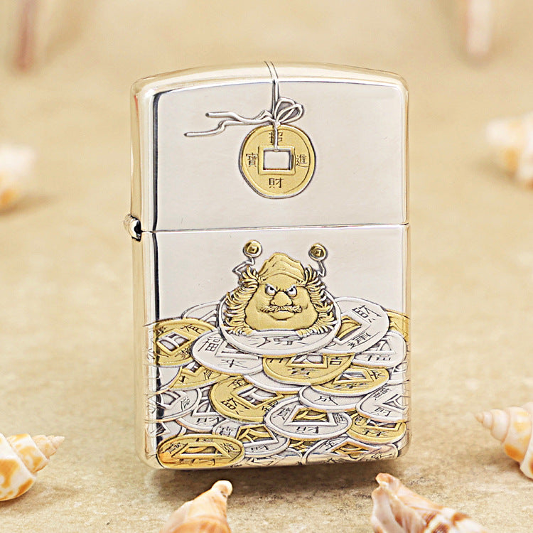 A hanging “Lucky Coin” with the engraving “????” (Bring in Wealth and Treasure) enhances the auspicious theme. This lighter embodies traditional cultural symbolism and fine craftsmanship, making it an ideal collector’s item or good luck gift.
