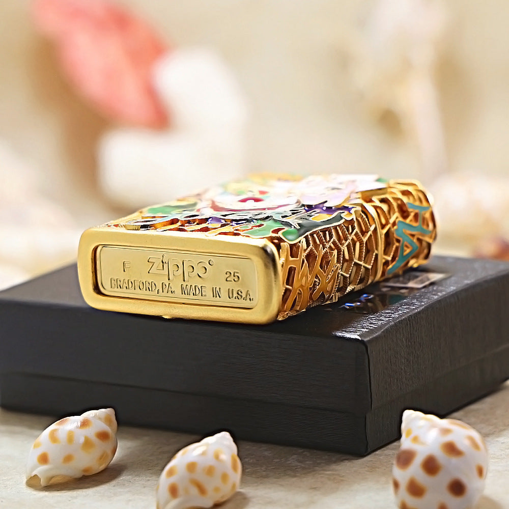 Zippo Gold Filigree Cloisonné Enamel Luminous Joker Character - CM106