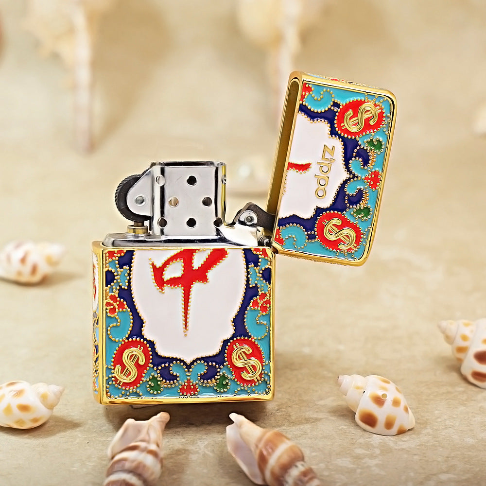 Zippo Heavy Relief Gold Enamel Prosperity Mahjong Tile Case - CM22