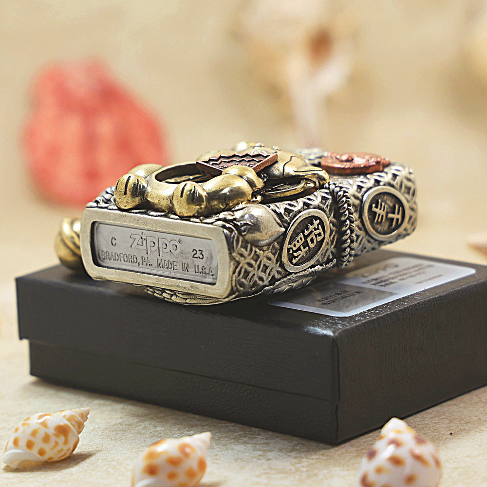 Zippo Heavy Relief Maneki-Neko Lucky Cat Fortune Case Set - CM19