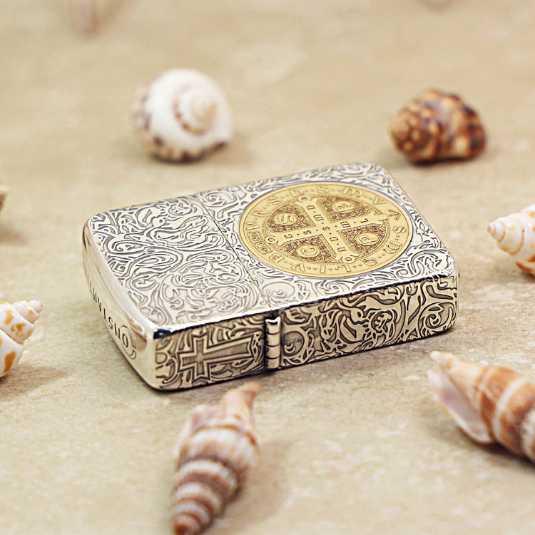Zippo Mosquito Edition Dual-Tone Constantine (Price Limited 438) 1941-DS60 features a timeless flat-top vintage design. Crafted in a dual finish of antique silver and gold plating, it delivers a striking visual contrast and premium texture.