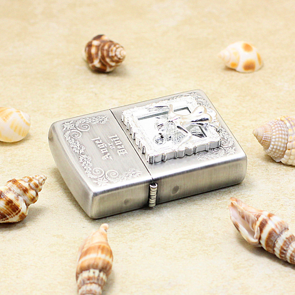 Crafted with high-polish silver plating and ornate decorative borders, this lighter exudes elegance and sophistication. Presented in a premium leather box, it makes a meaningful collectible or gift, symbolizing introspection, beauty, and inner strength.