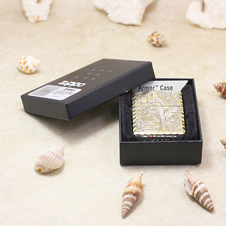 Zippo Two Tone Deep Carved Arabesque Pin-Up Girl in the Wind - SC07