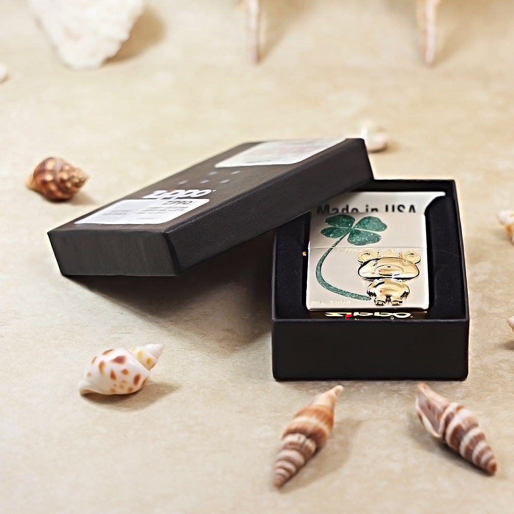 Zippo Two-Tone Gold and Silver I Finally Met You Clover Bear - JP74