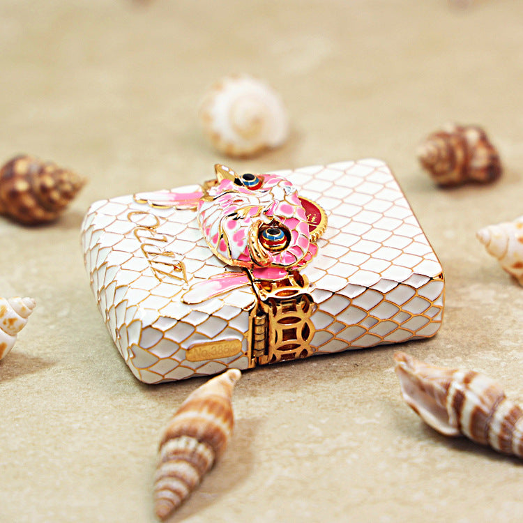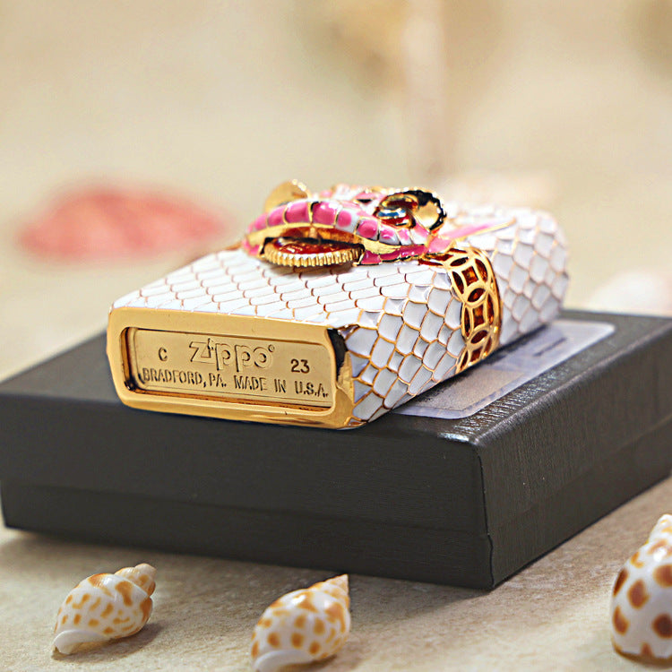Zippo White Scale Enamel Case Set Pink Dragon Head - CM01